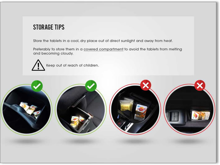 Untuk penggunaan kali pertama, pengguna mesti memasukkan tablet FuelPlus mengikut nisbah kapasiti tangki bahan api kerana ia harus merawat bahan api dalam tangki serta bahan api dalam saluran paip. Jika nisbahnya terlebih dos tetapi tidak melebihi 50%, ia tidak akan membahayakan enjin jentera anda tetapi nisbah tablet tidak boleh di bawah dos kerana ia tidak akan berkesan kepada enjin anda.