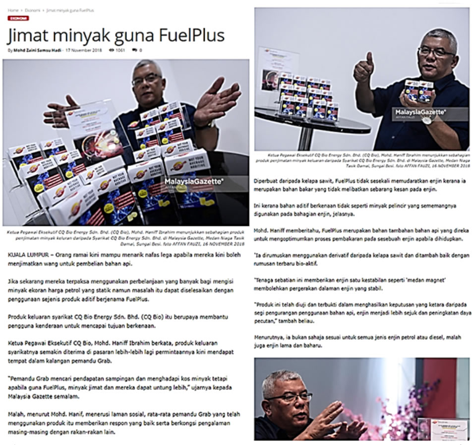 FuelPlus has been profile in many Malaysian newspapers.